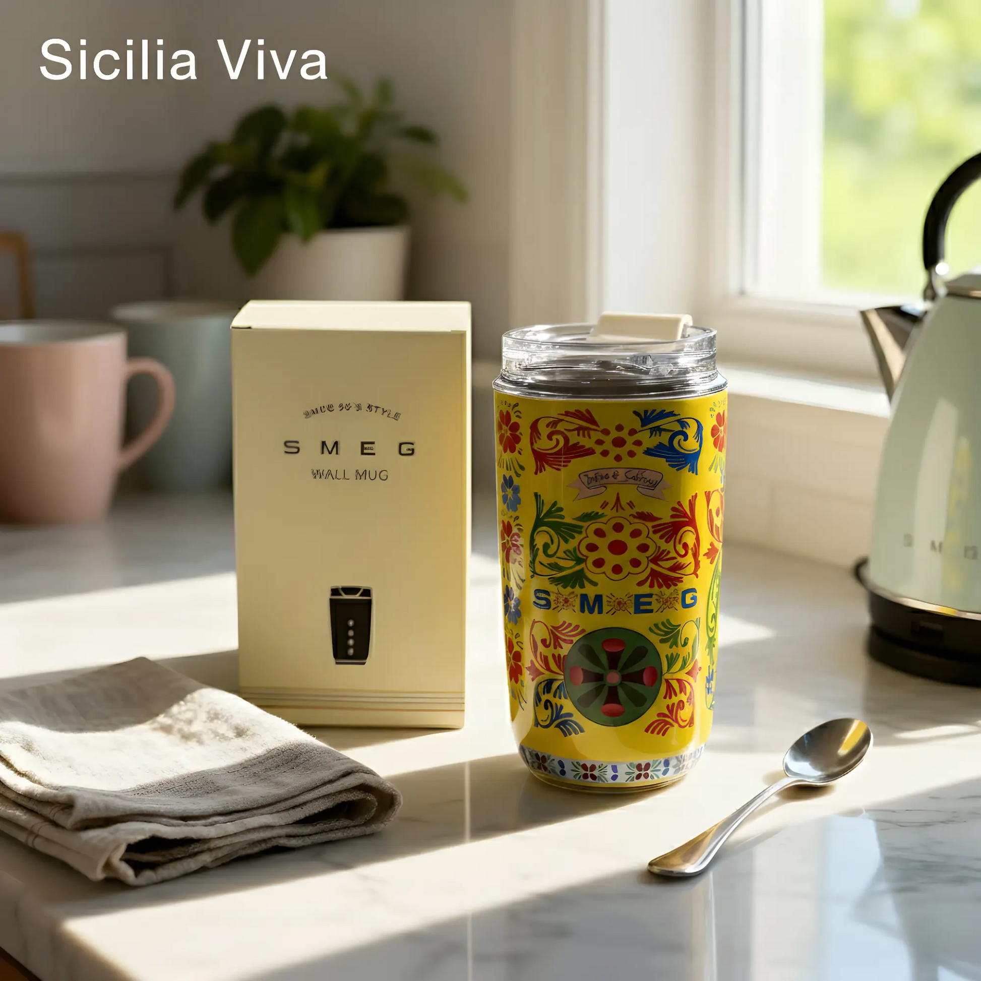 Kremowe wykończenie ma satynowy połysk – ani zbyt błyszczące, ani zbyt matowe. Zaokrąglone krzywizny inspirowane stylem SMEG są przyjemne w dotyku i wyglądają szlachetnie na każdej powierzchni, od kamiennych blatów po drewniane biurka.